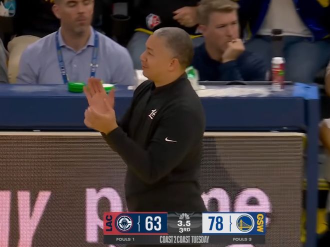 先来说说最近的比赛,快船客场79比98不敌勇士,快船整个下半场只得到30分。现在都2025年了,居然还能看到全场79分的NBA球队,确实也是奇葩。而在这场比赛的第三节,泰伦卢就派出了一个极其诡异的阵容。当时快船只落后7分,卢指导一个暂停换下主力,派上40岁的保罗,37岁的大洛,外加邓恩、琼斯、科林斯。